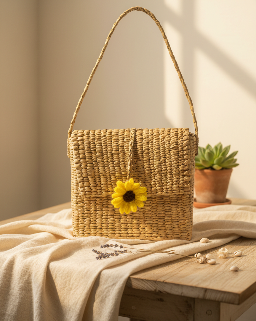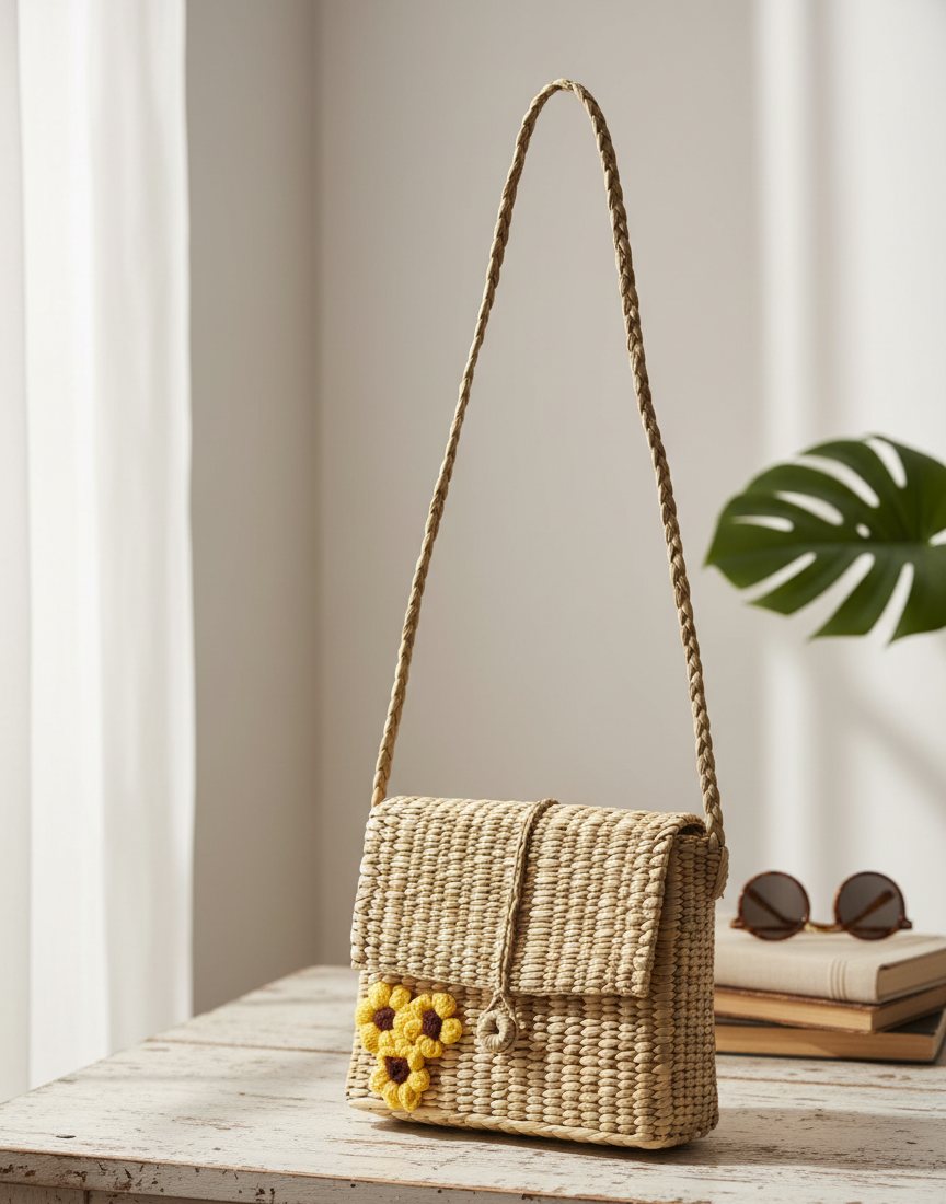 handcrafted Kauna grass sling bag, an eco-friendly and stylish crossbody accessory for women.